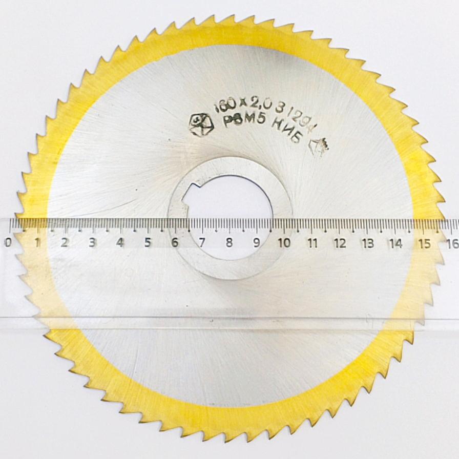 Фреза дисковая 2254-1294 отрезная/прорезная 160х2,0 z-64 Р6М5 (Тип2, посадка-32мм, шпон паз-8мм, ступица-d47мм) с покрытием, ГОСТ 2679-93