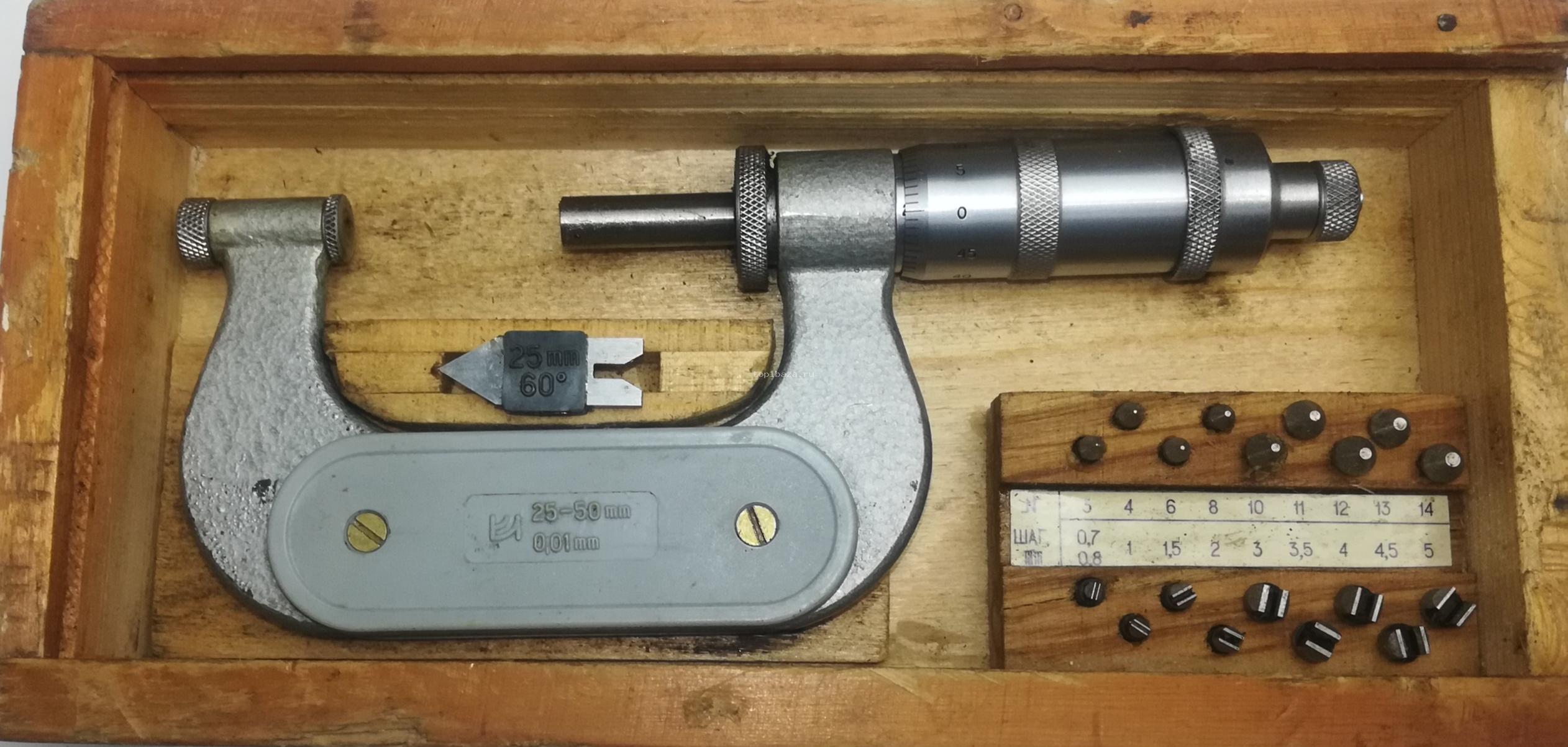 Микрометр Резьбовой МВМ-50 25-50мм (0,01) (60° 3,4,6,8,10,11,12,13,14)