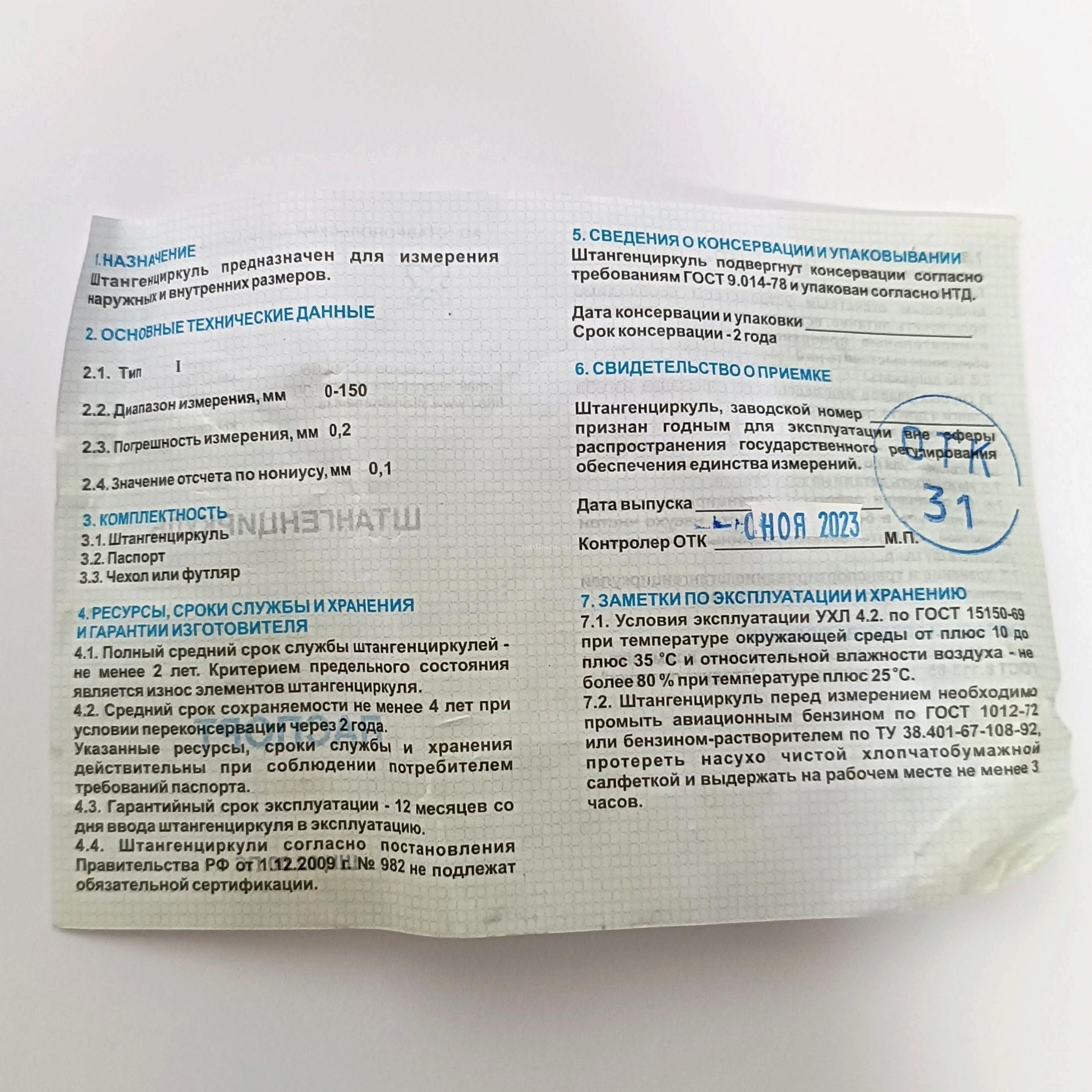 Штангенциркуль ШЦ-I-150-0,1-2 (СтИЗ)