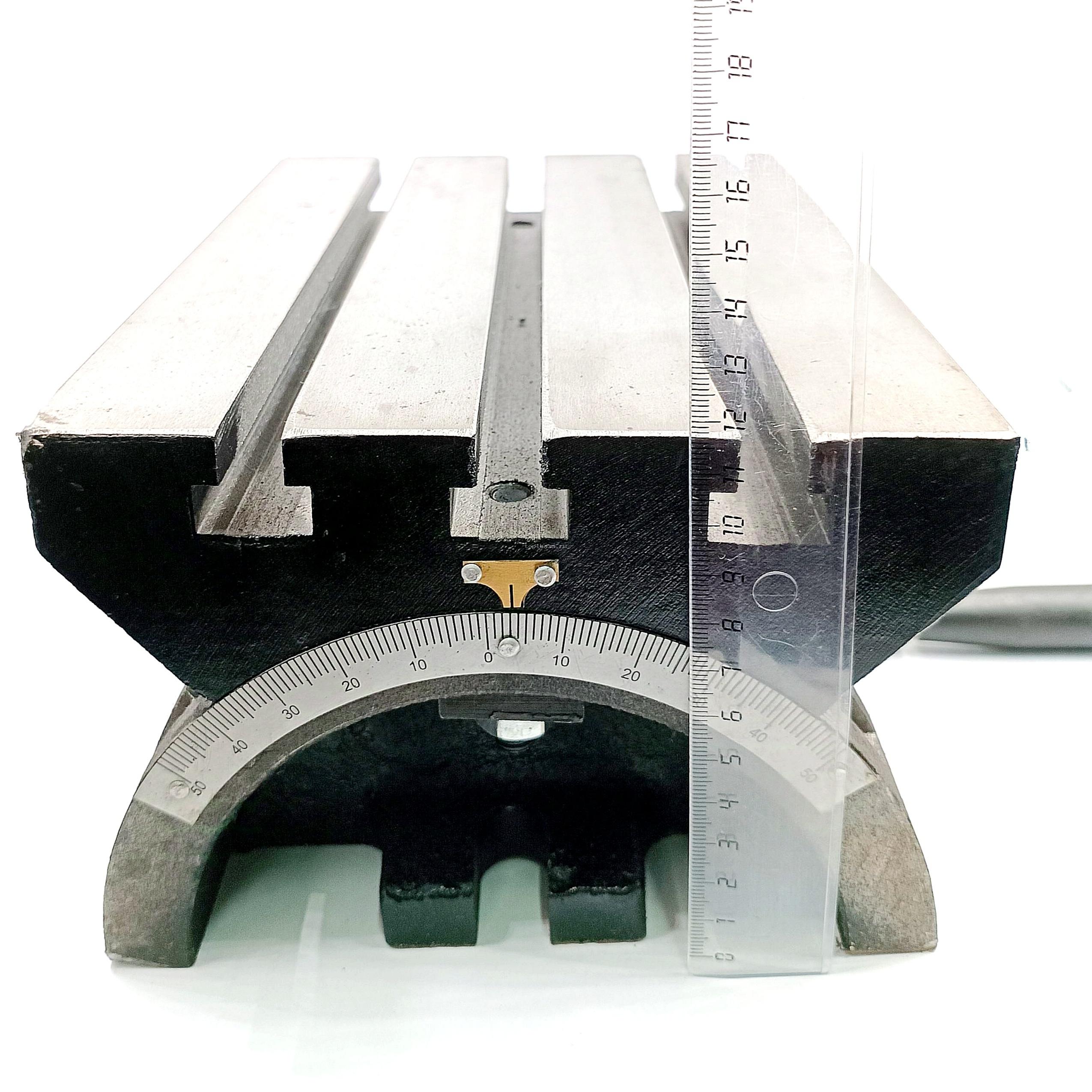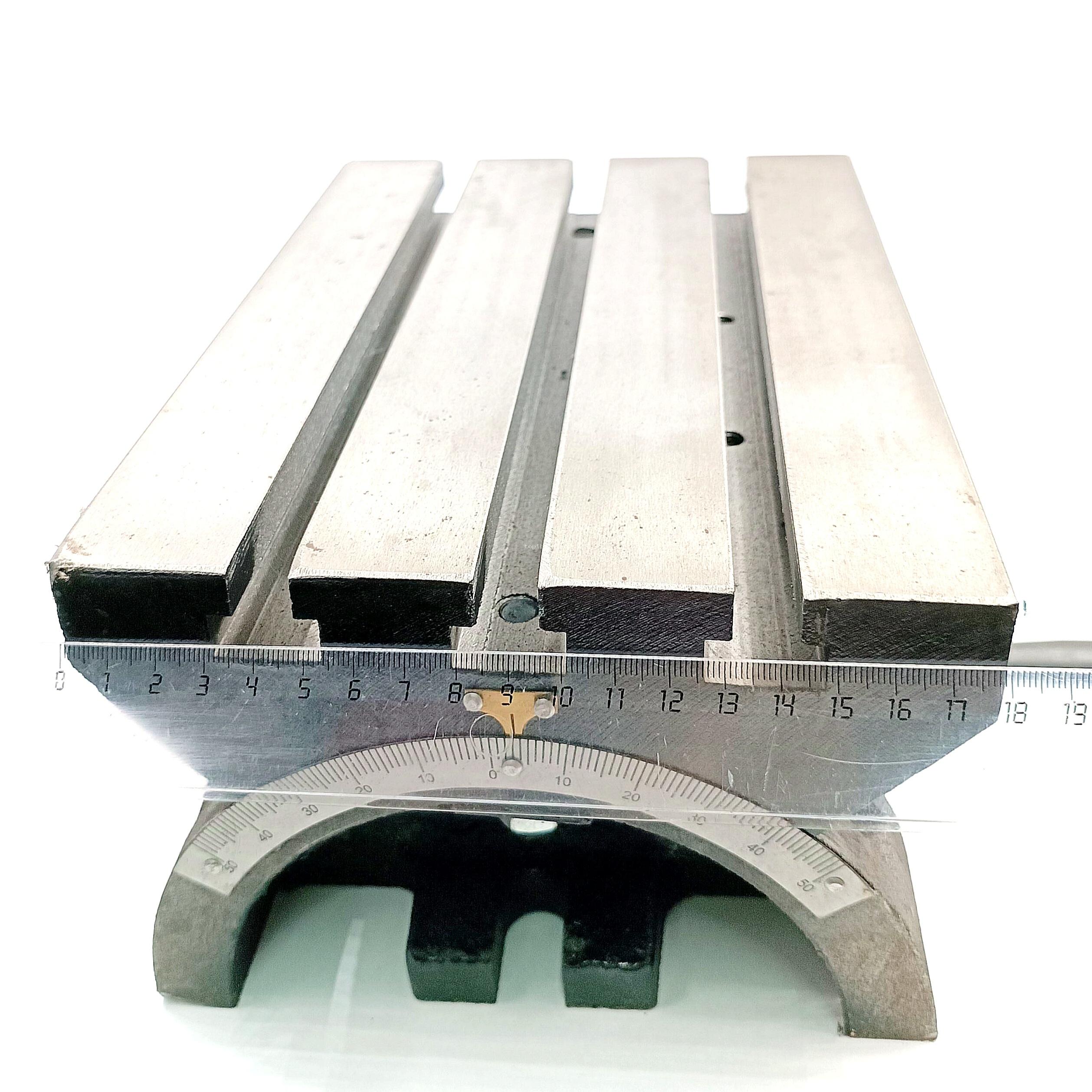 Описание товара: Стол координатный неповоротный наклоняемый предназначен для использования в качестве дополнительной оснастки на универсальных фрезерных и сверлильных станках. Использование стола позволяет успешно выполнять такие операции как фрезерование, сверление и обработка отверстий, фрезерование пазов и уступов, и других элементов детали под углом от 0° до 45°. Ширина паза стола - 16 мм; Расстояние между пазами - 50 мм; Расстояние между крепежными отверстиями - 210 мм.
