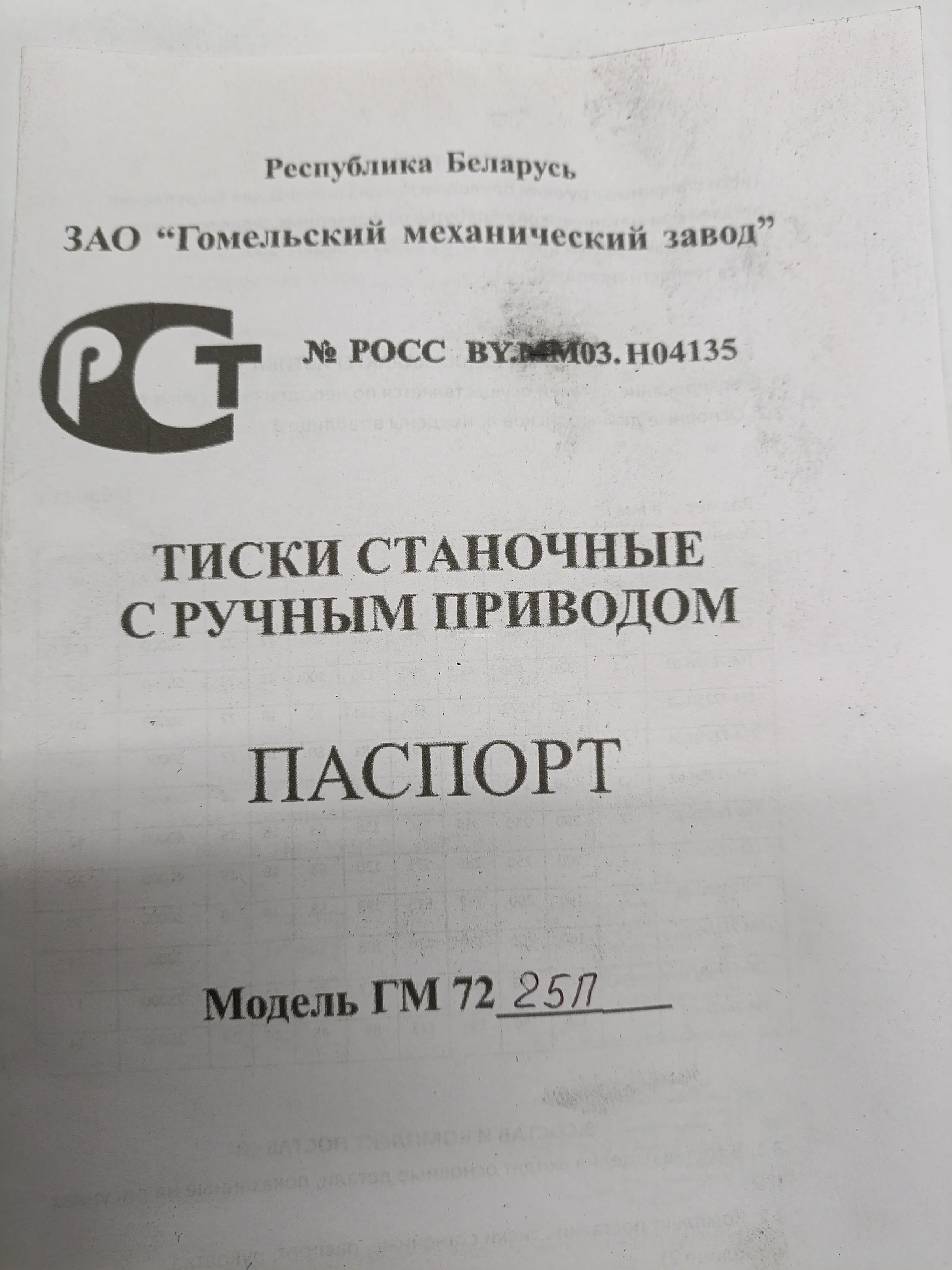 Тиски станочные чугунные поворотные 250мм ГМ-7225П-02 Гомель